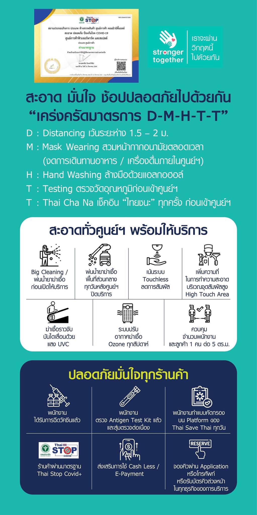 ศูนย์การค้าฯ มีความห่วงใยในความปลอดภัย และสุขอนามัยของลูกค้า พนักงานอย่างสูงสุด และพร้อมปฏิบัติตามมาตรการรัฐ อย่างเข้มงวด เราพร้อมจะดำเนินการทุกวิถีทางเพื่อจะร่วมฝ่าวิกฤตการณ์ครั้งนี้ให้ผ่านไปได้ด้วยดี