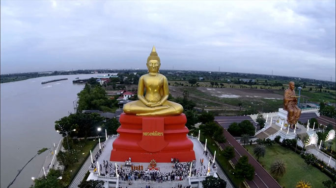 - ถ้ามาจากถนนวงแหวนตะวันตก ใช้ทางด่วนบางปะอิน วิ่งจนถึงด่านบางปะอิน แล้วแยกซ้ายออกมาทางสามโคก เข้าเส้นกาญจนาภิเษก เมื่อข้ามสะพานข้ามแม่น้ำเจ้าพระยาจะสังเกตเห็นองค์หลวงพ่อตั้งอยู่ เมื่อลงจากสะพานให้เลี้ยวซ้ายเข้าถนนชลประทาน อีกประมาณ 1-2 กิโลเมตร